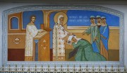 Алексий, Митрополит московский, расчищенный фрагмент росписи на подпружной арке Троицкой церкви при детском приюте им. братьев Бахрушиных в Сокольниках, в Москве. |  Алексий, митрополит Московский, мозаичный образ на фасаде колокольни Сергиево-Казанской церкви в Краснообске Новосибирской области. |  Алексий, митрополит Московский, роспись основного объема собора Воскресения Словущего в Рузе Московской области. |  Алексий, митрополит Московский, мозаика на северной стене часовни-усыпальницы Прохоровых в Новодевичьем монастыре в Москве. |  Св. Любовь, Алексий, митрополит Московский, св.Екатерина, мозаика на северной стене часовни-усыпальницы Прохоровых в Новодевичьем монастыре в Москве. |