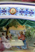 Явление Христа апостолам Луке и Клеопу, узнавшим его только поле благословения им хлеба (Лк, 24: 28-31).  Фрагмент сохранившейся росписи Ивановской церкви в Ивановском Старицкого района Тверской области. |  Остатки внутренней росписи Покровской церкви в селе Денисово Ясногорского района Тульской области. |  Фрагмент росписи в интерьере церкви Святой Екатерины в Феодосии Республики Крым. |  Вечеря в Эммаусе, образ в иконостасе правого придела Иоанна Предтечи церкви Успения Пресвятой Богородицы, что на Успенском вражке, в Москве. |  Христос в Эммаусе, роспись западной стены Похвальского придела Спасо-Преображенского собора в Угличе Ярославской области. |  Вечеря в Эммаусе, роспись западной стены трапезной церкви Николая Чудотворца, что в Кузнецах, в Москве. |  Иисус Христос в Эммаусе, роспись интерьера храма Александра Невского в Абдулино Оренбургской области. | | | |