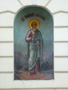 Апостол и евангелист Иоанн (ошибочно подписано Марк), роспись паруса свода церкви Введения Пресвятой Богородицы во Храм у Салтыкова моста в Москве. |  Евангелист Иоанн Богослов. Роспись на парусах основного объема Феодоровской церкви в деревне Лукьяново Малоярославецкого района Калужской области. |  Образы евангелистов Иоанна Богослова и Луки на фасаде Сретенской духовной семинарии Сретенского монастыря в Москве. |  Святой Иоанн, роспись Покровской церкви в Осеченках Раменского района Московской области. |  Никольская церковь в Вихоревке Братского района Иркутской области. Образ святого апостола и евангелиста Иоанна на стене церковного здания. |