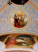 Фрагмент росписи Благовещенской церкви в Княжево Бежецкого района Тверской области. |  Фрагмент росписи Благовещенской церкви в Княжево Бежецкого района Тверской области. |  Иоанн Богослов, апостол и евангелист, роспись паруса свода церкви иконы Божией Матери Неопалимая Купина в Кубинке-60 Одинцовского городского округа Московской области. |  Иоанн Богослов, роспись паруса свода собора иконы Божией Матери Боголюбская в Высокопетровском монастыре в Москве. |  Святой евангелист Иоанн, роспись паруса Знаменской церкви в Ховрино в Москве. |