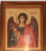 Барельеф "Михаил Архангел" на северном фасаде часовни иконы Божией Матери Смоленская (?) на кладбище в Толпыгино Приволжского района Ивановской области. |  Архангелы Михаил и Гавриил, единственная сохранившаяся старая роспись в интерьере церкви Покрова Пресвятой Богородицы, что на Псковской горе, в Москве. |  Образ Архангела Михаила на левых диаконских вратах иконостаса церкви Спаса Нерукотворного Образа в Спасо-Бородинском женском монастыре Можайского района Московской области. |  Архангел Михаил, роспись на западной стене Троицкой церкви в Карачарово в Москве. |  Храмовая икона на апсиде церкви Михаила Архангела в Ляскеля Питкярантского района Республики Карелия. |