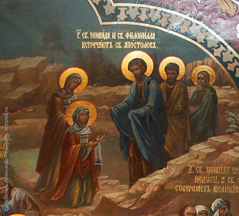 Роспись "Свв. Зинаида и Филонилла встречают апостолов" в приделе церкви Николая Чудотворца и Татианы Мученицы при доме кн. З. Н. Юсуповой, гр. Сумароковой-Эльстон у Красных ворот в Москве. 15 апреля 2012 годаФот. Чеботарь Александр Мирчевич
