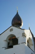Звонница над крыльцом церкви Георгия Победоносца со Взвоза в Пскове. |  Звонница церкви Иоакима и Анны на Полонище в Пскове. |  Вознесенская церковь (Старое Вознесение) Старовознесенского монастыря в Пскове. Справа фрагмент церкви Рождества Пресвятой Богородицы, на момент съемки бывшей планетарием. | | |