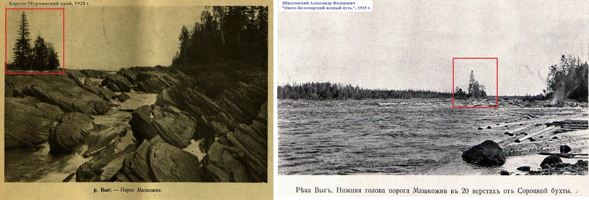 Слева при малой воде: Карело-Мурманский край, 1928 г. / справа - доклад Олон. вице-губ. Шидловского, 1915 г.