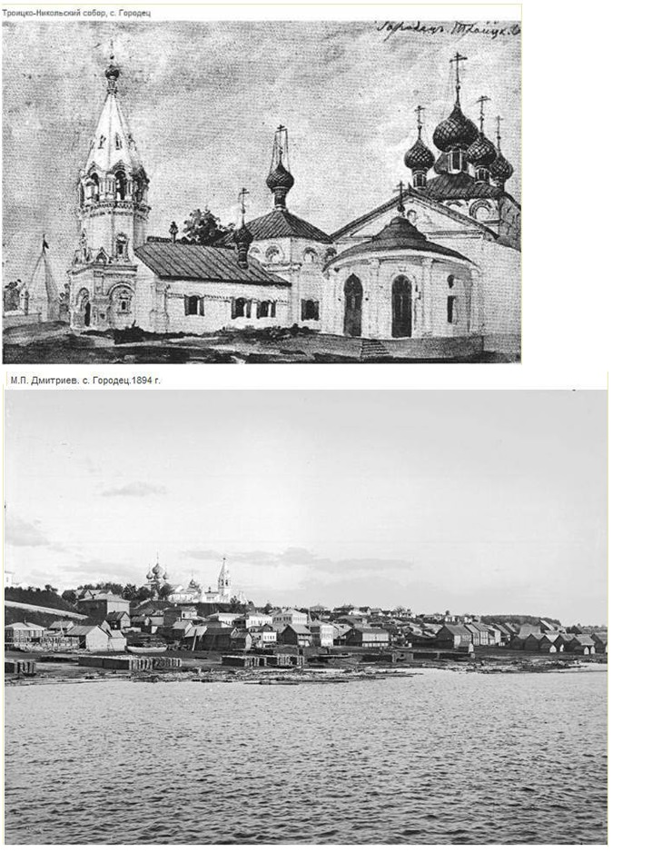 "Церковь Иконы Божией Матери Феодоровская в Городецком Феодоровском монастыре."На освящении отремонтированного собора 19 мая 1767 г. присутствовала имп. Екатерина II.http://www.gorodets-52.ru/index.php/dejstvujushhie-hramy/25/25Левая церковь у Тюменева