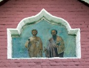 Средний ярус колокольни Петропавловской церкви в Самаре. |  Храмовая икона на западном фасаде церкви Петра и Павла в Русском (в Отъяссах) Сосновского района Тамбовской области. |  Храмовая икона над входом в часовню Петра и Павла в посёлке Евгора Медвежьегорского района Республики Карелия. |  Икона с образами апостолов Петра и Павла. |  Христос и апостолы, роспись западной стены основного объема церкви Троицы Живоначальной в Болтино Мытищинского района Московской области. |