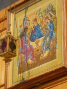 Фрагмент иконостаса церкви Покрова Пресвятой Богородицы Казанского монастыря в Ярославле. В качестве господской иконы - Троица ветхозаветная. |  Иконы в интерьере церкви Флора и Лавра в Кашире Московской области. |  Святая Троица, роспись центральной части восточной стены церкви Спаса Всемилостивого в Митино, в Москве. |  Два храмовых образа в иконостасе церкви Троицы Живоначальной, что в Серебряниках, в Москве. |  Храмовый образ, фрагмент росписи восточной части свода трапезной церкви Троицы Живоначальной, что в Серебряниках, в Москве. |