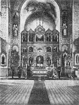 Писания. Главы собора (пять над самым зданием собора и шесть над колокольнею) посеребрены с позолоченными крестами. Входов в храм четыре: из них один с восточной стороны ведет прямо в галерею, окружающую все три алтаря, и служит для духовенства, а остальные для богомольцев. Главная часть храма тремя широкими арками сообщается с алтарями. Главный престол посвящен имени покровителя мореплавателей - Св. Николая Чудотворца, левый - в честь ----- <23/24> ----- и память Св. Алексия Московского, а правый - в честь Богоявления. В храме пароводяное отопление; электрическое освещение. Вмещает в себе до 2500 человек. Строителями собора были профессор Института гражданских инженеров В. А. Косяков и его помощник гражданский инженер А. И. Вексель. К собору приписаны: церковь на Либавском гарнизонном кладбище во имя Св. Петра, Митрополита Московского и церковь при манеже в порту Императора Александра III во имя Св. Благоверного Великого князя Александра Невского. Манежная церковь устроена в 1906 г.; освящена 3 марта 1907 г. Алтарь с иконостасом отделяется глухою подъемною железною шторою. По штату при соборе положены: настоятель-протоиерей, один священник, диакон и два псаломщика. Причт помещается в казенных квартирах. Прихожанами морского собора состоят чины флота (Либавского флотского полуэкипажа и отдельного отряда подводного плавания), а также служащие чины портового Управления.