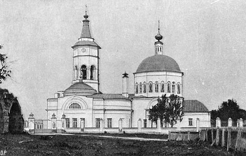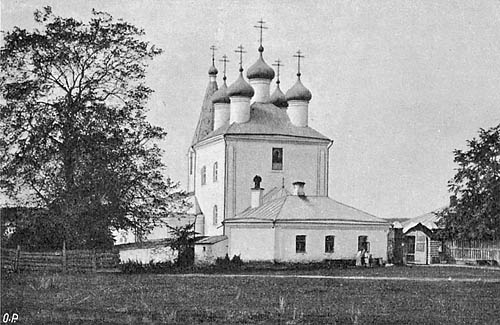 АЛЬБОМ ВИДОВ. ЦЕРКВИ и МОНАСТЫРИ Г. СЕРПУХОВА. ИЗДАНИЕ ОТ ИЗДАТЕЛЯ. Предлагаемые краткие сведения о постройке церквей относятся к современному их состоянию; большинство из них были раньше деревянные, и постройка их относится к XIV-XVI столетиям, как видно из книги П. Симcона ? "История Серпухова". Подробные же сведения о монастырях помещены в книгах: В. А. Рождественского - "Историческое описание Серпуховского Владычного монастыря", и Д. К. Тренева - "Серпуховской Высотский монастырь". 1) Троицкий собор. Построен в 1696 году на средства архимандрита Спасо-Андрониевского монастыря Феодосия, бывшего до поступления в монашество священником в этом соборе; в тоже время был с левой стороны один придел во имя св. мученика Димитрия Солунского, который был перестроен в 1841 году из разобранной по ветхости церкви, находившейся в крепости, а вместо нее сделан придел с правой стороны во имя св. Николая Чудотворца, пристроенный к собору в 1837 году. 2) Церковь Успения Пресвятой Богородицы. Первоначально построена на средства прихожан в 1744 году. Вновь перестроена в 1854 году на средства потомственного почетного гражданина Николая Максимовича Коншина. Приделы: 1) во имя св. Иоанна Богослова, 2) во имя иконы "Всех Скорбящих Радости". 3) Св. Николы Святоши. 3) Церковь Вознесения Господня. Построена в 1747 году на средства серпуховск. купца Григория Тимофеевича Кишкина, а в 1767 году пристроен придел с левой стороны во имя Владимирской иконы Божией Матери. 4) Церковь Преображения Господня. Построена первоначально в XVIII столетии. В 1864 году церковь исправлена и приделана колокольня. Приделы: 1) св. Архистратига Михаила, 2) Благовещения Пресвятой Богородицы. 5) Церковь Рождества Пресвятой Богородицы (св. Никиты муч.). Построена в 1745 году. 6) Церковь Казанской иконы Божией Матери. Построена, по преданию, на средства серпуховск. купчихи Акилины Васильевны Кишкиной. Придел: во имя св. великомученицы Параскевы Пятницы и св. муч. Агрипины. 7) Церковь Крестовоздвиженская (св. Георгия.) Построена в 1755 году на средства серпуховск. купчихи Акилины Васильевны Кишкиной. Приделы: 1) во имя св. апостолов Петра и Павла, 2) св. великомученика Георгия. 8) Церковь Печерской иконы Божией Матери, при Крестовоздвиженской церкви. Построена в 1804 году на средства прихожанина Николая Ивановича Плотникова. 9) Церковь св. Илии Пророка. Построена в 1748 году. Придел во имя св. великомуч. Екатерины. 10) Церковь св. Троицы. Построена неизвестно кем и когда. Приделы: 1) во имя св. Василия Блаженного, 2) во имя Боголюбской иконы Божией Матери. 11) Церковь Всех Святых (кладбищенская). Построена в 1870 году на средства Серпуховского Городского Общества. Приделы: 1) во имя иконы "Взыскания Погибших" Божией Матери, 2) во имя св. Никиты мученика. 12) Церковь Воскресения Христова. Построена в 1723 году на средства прихожан. Придел во имя Афанасия и Кирилла Александрийских. 13) Церковь св. Николая Чудотворца (Николы Белого.) Первоначальная постройка каменной в 1649 году. Перестроена вновь в 1835 году, вместо же двухэтажной ветхой перестроена вновь в 1857 году. Колокольня построена в 1843 году. Приделы: 1) во имя св. Алексия митрополита Моск., 2) во имя св. Кирилла Белоозерского. 14) Церковь Распятия Господня. Построена в 1719 году, по преданию, на средства княгини Назареты Матвеевны Гагариной. Приделы: 1) Усекновения Главы св. Иоанна Предтечи, 2) Рождества Христова. 15) Ц